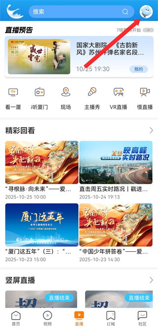 1、打開看廈門APP,點(diǎn)擊右上角個(gè)人圖標(biāo),進(jìn)入個(gè)人頁面。