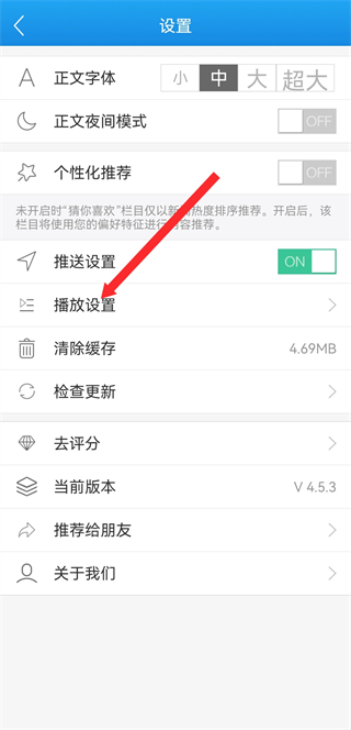 3、在設(shè)置的界面,需要點(diǎn)擊播放設(shè)置,進(jìn)入播放設(shè)置頁面。