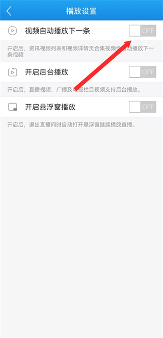 4、在播放設(shè)置頁面,將視頻自動(dòng)播放下一條的開關(guān)開啟,完成設(shè)置。