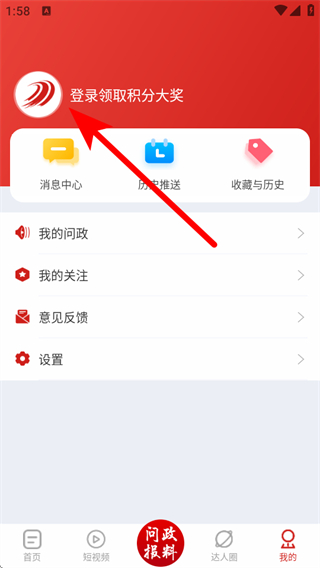 2、在個(gè)人頁(yè)面點(diǎn)擊登錄領(lǐng)取積分大獎(jiǎng),進(jìn)入登錄的頁(yè)面。