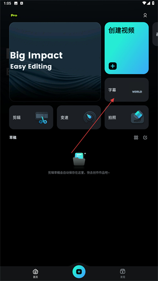 1、啟動萬興喵影的應用,在首頁上方點擊字幕的按鈕。