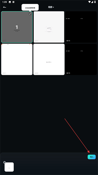 2、進入視頻選擇的頁面內(nèi),選擇后點擊右下角導入的按鈕。