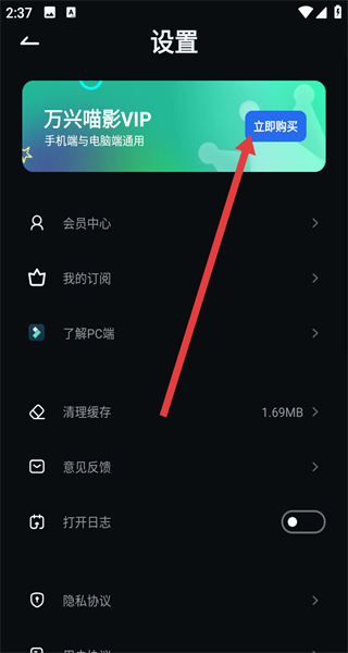 2、在設置界面,點擊立即購買區(qū)域,觸發(fā)登錄流程,進入登錄界面。