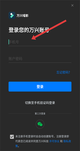 3、在登錄界面,點擊切換至密碼登錄選項,切換到密碼登錄模式。