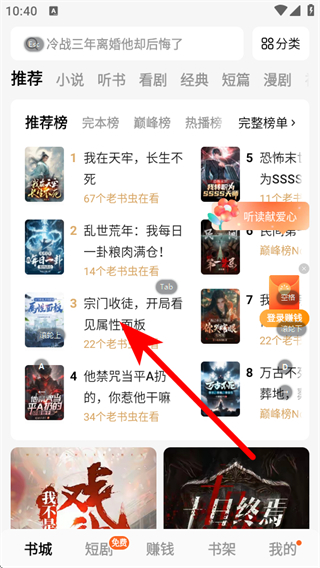 1、在番茄app書城頁面,點擊推薦榜里的作品封面,進入作品詳情頁面。