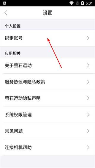 2、在設(shè)置頁面,點擊綁定賬號選項。