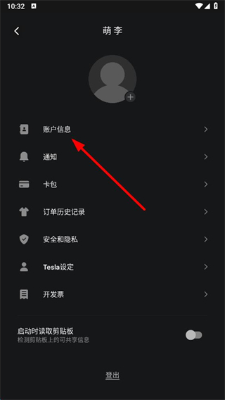 3、在個人設(shè)置頁面中,點擊賬戶信息選項進入賬戶信息界面。