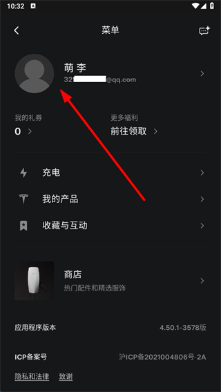 2、在菜單頁面點擊帶有頭像及郵箱信息區(qū)域,進入個人相關(guān)設(shè)置頁面。