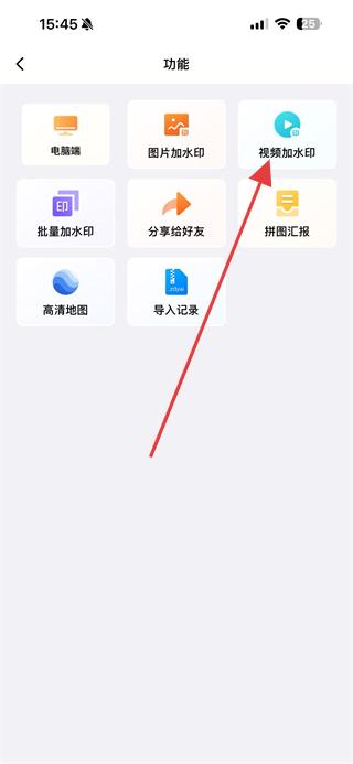 2、在功能選擇頁(yè)面點(diǎn)擊視頻加水印,進(jìn)入視頻添加頁(yè)面。