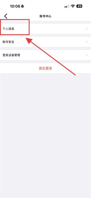 3、在賬號(hào)中心頁(yè)面,點(diǎn)擊個(gè)人信息選項(xiàng)。