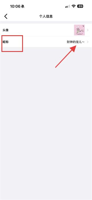 4、在個(gè)人信息編輯頁(yè)面中找到昵稱(chēng)選項(xiàng),點(diǎn)擊后即可修改昵稱(chēng)名字。