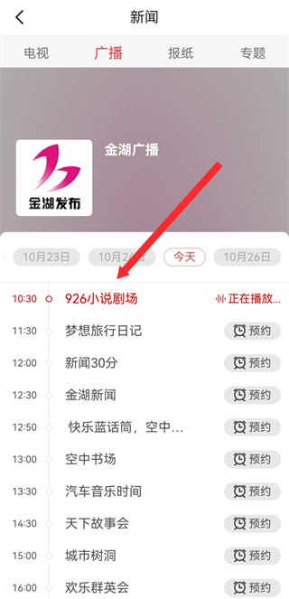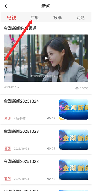 2、在新聞頁面,點(diǎn)擊廣播的標(biāo)簽,進(jìn)入廣播節(jié)目列表的界面。