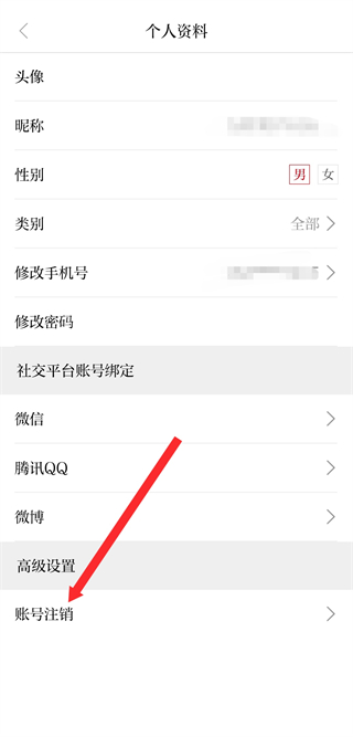 4、在個(gè)人資料的界面,找到賬號(hào)注銷選項(xiàng),按照提示完成賬號(hào)注銷操作。