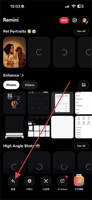 1、點(diǎn)擊底部增強(qiáng),進(jìn)入圖片增強(qiáng)處理流程。