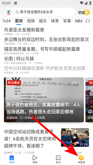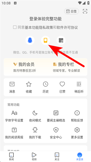 1、打開(kāi)騰訊新聞APP,點(diǎn)擊右下角未登錄,進(jìn)入登錄的頁(yè)面。