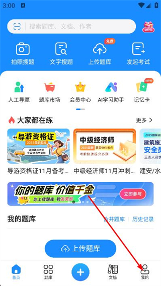 1、打開考試寶App,點(diǎn)擊底部導(dǎo)航欄中的我的選項,進(jìn)入個人頁面。