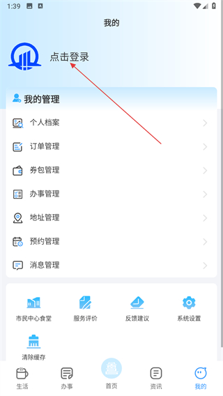 2、進(jìn)入個人頁面之后,找到上方點擊登錄區(qū)域并點擊。