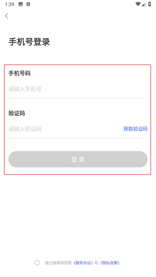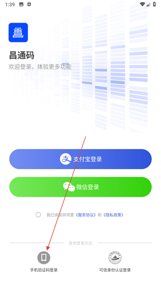 2、在登錄頁面點擊手機(jī)驗證碼登錄選項,進(jìn)入手機(jī)號登錄頁面。