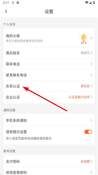 2、在設(shè)置界面,點(diǎn)擊實(shí)名認(rèn)證選項(xiàng),進(jìn)入實(shí)名認(rèn)證頁(yè)面。