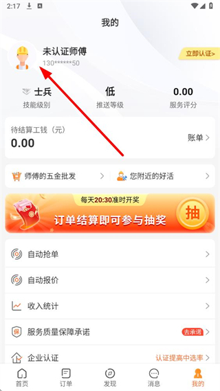 1、在工奇兵我的頁(yè)面,點(diǎn)擊頭像區(qū)域,進(jìn)入設(shè)置界面。