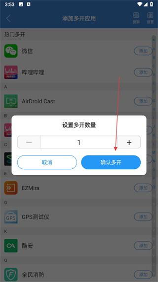 3、在彈出的設(shè)置多開數(shù)量窗口中,設(shè)置好多開數(shù)量后點(diǎn)擊確認(rèn)多開按鈕。