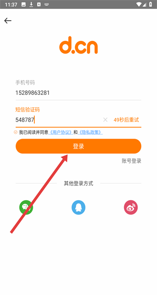 4、在填寫好獲取到的驗證碼后,點擊登錄按鈕,即可完成登錄。