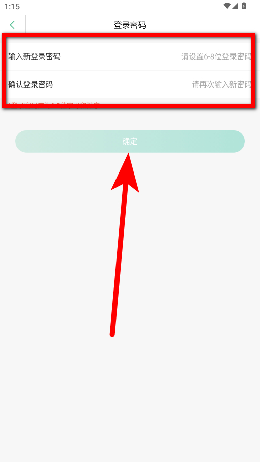 4、在登錄密碼頁面,輸入新登錄密碼并確認(rèn),然后點(diǎn)擊確定,即可完成登錄密碼設(shè)置。