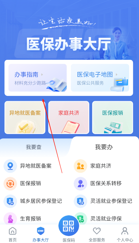 3、進(jìn)入醫(yī)保辦事大廳詳情頁,查看辦事指南了解材料流程,借助醫(yī)保電子地圖找服務(wù)點(diǎn),辦理異地就醫(yī)備案家庭共濟(jì)等業(yè)務(wù),高效完成醫(yī)保辦事需求。