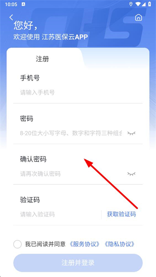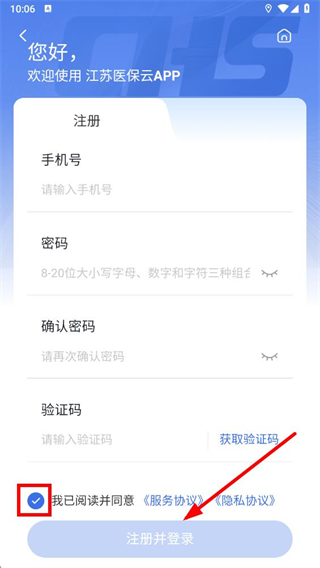 4、勾選我已閱讀并同意服務(wù)協(xié)議、隱私協(xié)議,點(diǎn)擊注冊并登錄按鈕,即可完成注冊操作。
