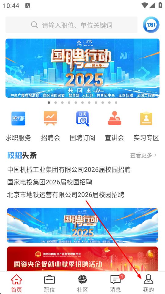 1、打開(kāi)國(guó)聘APP,點(diǎn)擊底部導(dǎo)航欄中的我的。