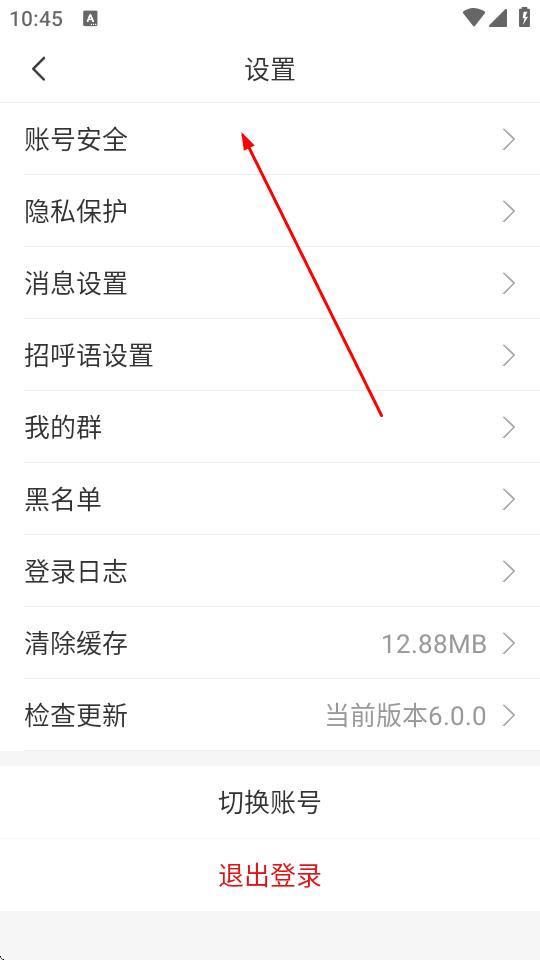 3、在設(shè)置頁(yè)面,點(diǎn)擊賬號(hào)安全選項(xiàng)。
