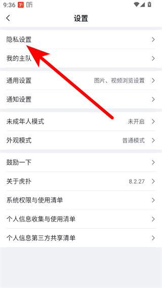 3、在設(shè)置頁(yè)面,點(diǎn)擊隱私設(shè)置選項(xiàng),進(jìn)入隱私設(shè)置界面。