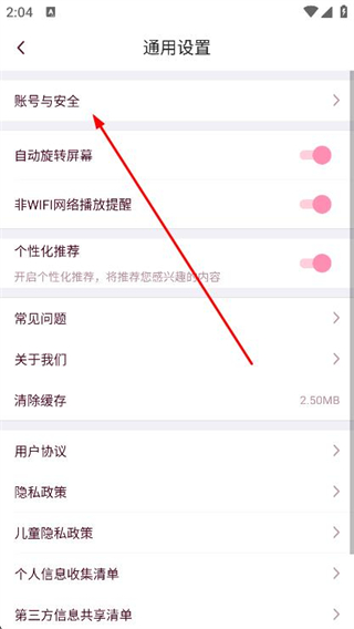 3、進入通用設(shè)置頁面后,點擊賬號與安全選項。
