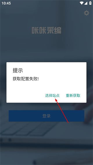 1、打開咔咔采編軟件,出現(xiàn)獲取配置失敗提示時,點擊選擇站點選項,進入站點搜索界面。