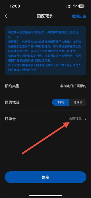 3、在預(yù)約頁面,選擇預(yù)約憑證,訂單號(hào)或證件號(hào),并選擇對(duì)應(yīng)的訂單。