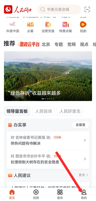 1、打開人民網(wǎng)APP,點擊右下角我的按鈕,進入個人的頁面。