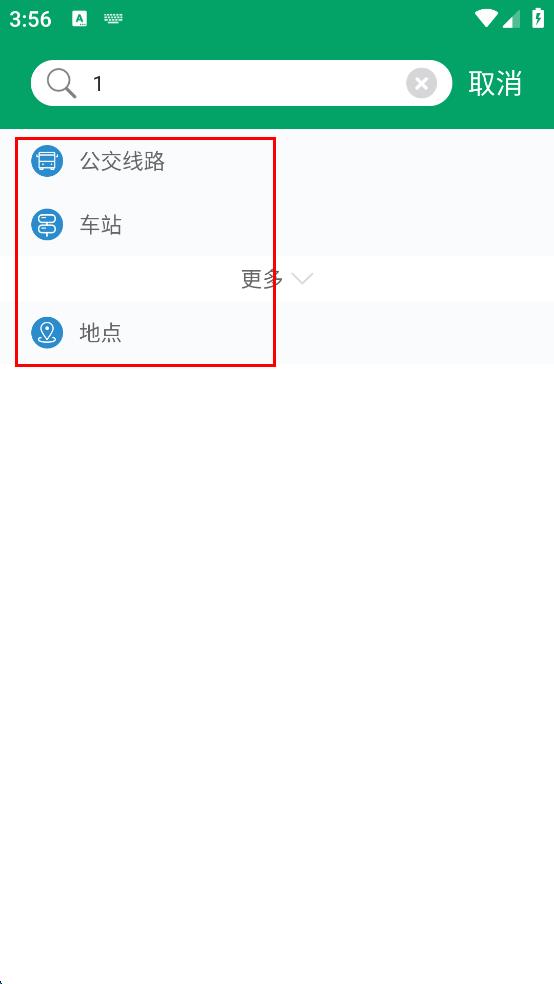 4、在搜索框輸入相關(guān)信息,可從彈出的“公交線路”“車站”“地點(diǎn)”等選項(xiàng)中選擇,進(jìn)行公交信息查詢。