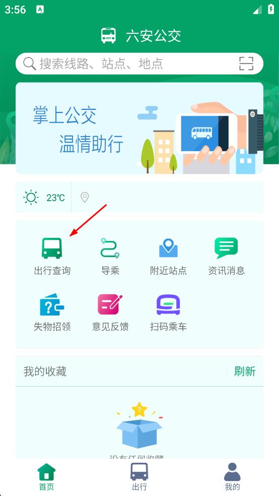 2、在主界面,點(diǎn)擊“出行查詢”,進(jìn)入出行查詢頁(yè)面。