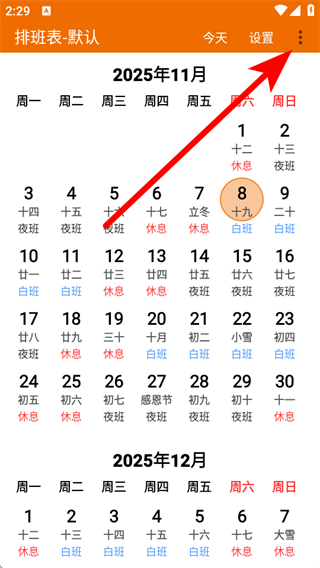 1、打開我的排班表APP,需要點(diǎn)擊右上角的設(shè)置按鈕。