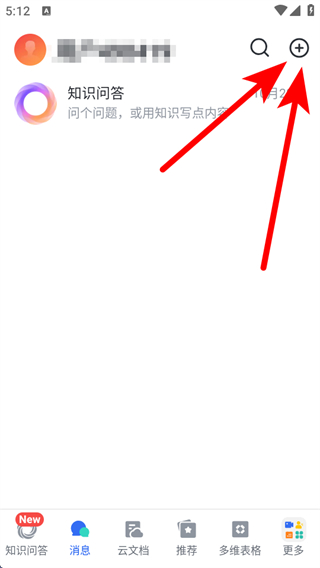 1、打開飛書,我們需要點(diǎn)擊右上角的+號(hào),展開功能的菜單。