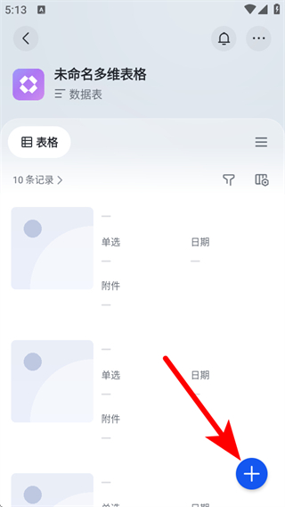 3、在多維表格界面,點(diǎn)擊右下角的+號(hào),進(jìn)入記錄編輯頁面。