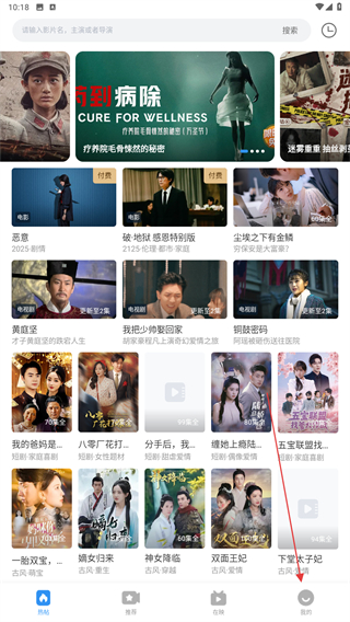 1、啟動影視大全的APP,進(jìn)入首頁點(diǎn)擊右下我的按鈕。
