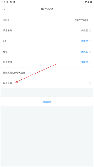 4、進(jìn)入賬戶與安全的界面內(nèi),點(diǎn)擊下方賬號注銷即可。