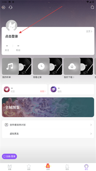 2、在個(gè)人主頁(yè)的頁(yè)面內(nèi),點(diǎn)擊登錄的區(qū)域位置。