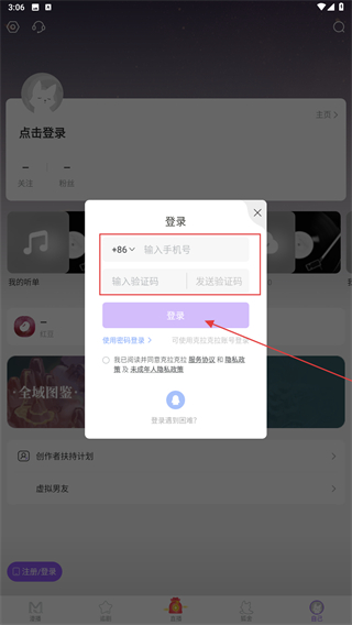 3、輸入手機(jī)號(hào)、驗(yàn)證碼后,再點(diǎn)擊登錄按鈕即可完成。