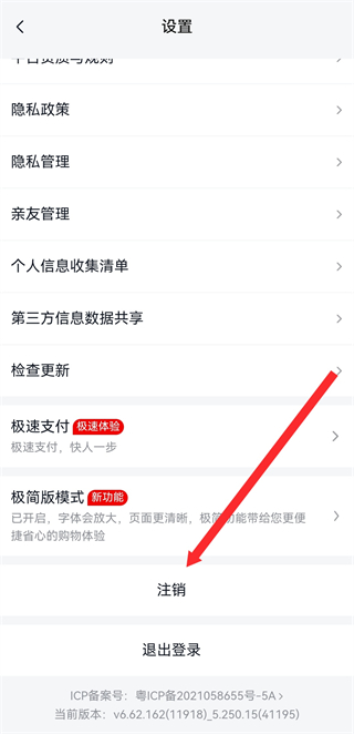 3、在設(shè)置頁面,找到并點(diǎn)擊注銷選項(xiàng),進(jìn)入注銷美團(tuán)優(yōu)選App服務(wù)頁面。
