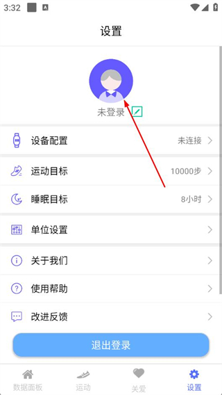 2、在設(shè)置頁面,點(diǎn)擊未登錄頭像區(qū)域。