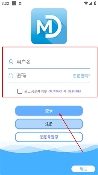 3、輸入用戶名、密碼,勾選同意用戶協(xié)議與隱私政策后,點(diǎn)擊登錄。