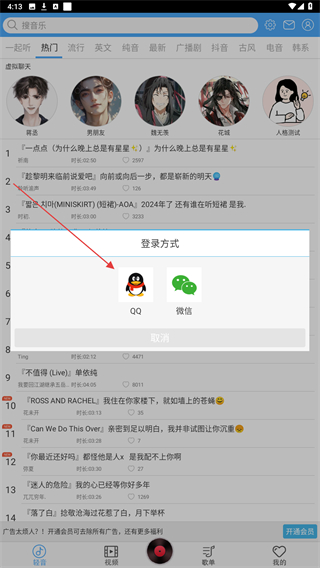 2、點(diǎn)擊后,界面彈出登錄方式,選擇并點(diǎn)擊QQ登錄的按鈕。