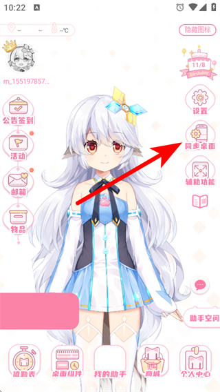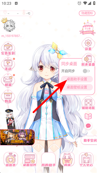 2、在同步桌面菜單中,點(diǎn)擊桌面助手設(shè)置選項(xiàng),進(jìn)入桌面助手設(shè)置頁(yè)面。